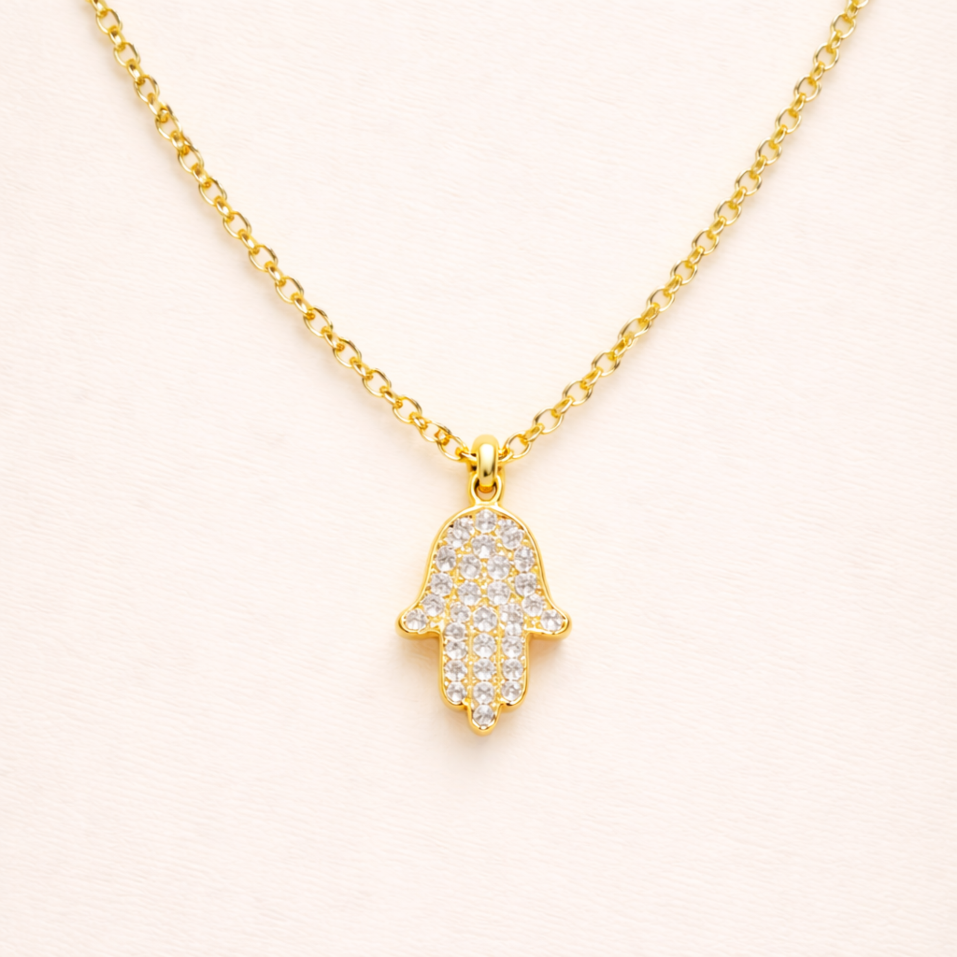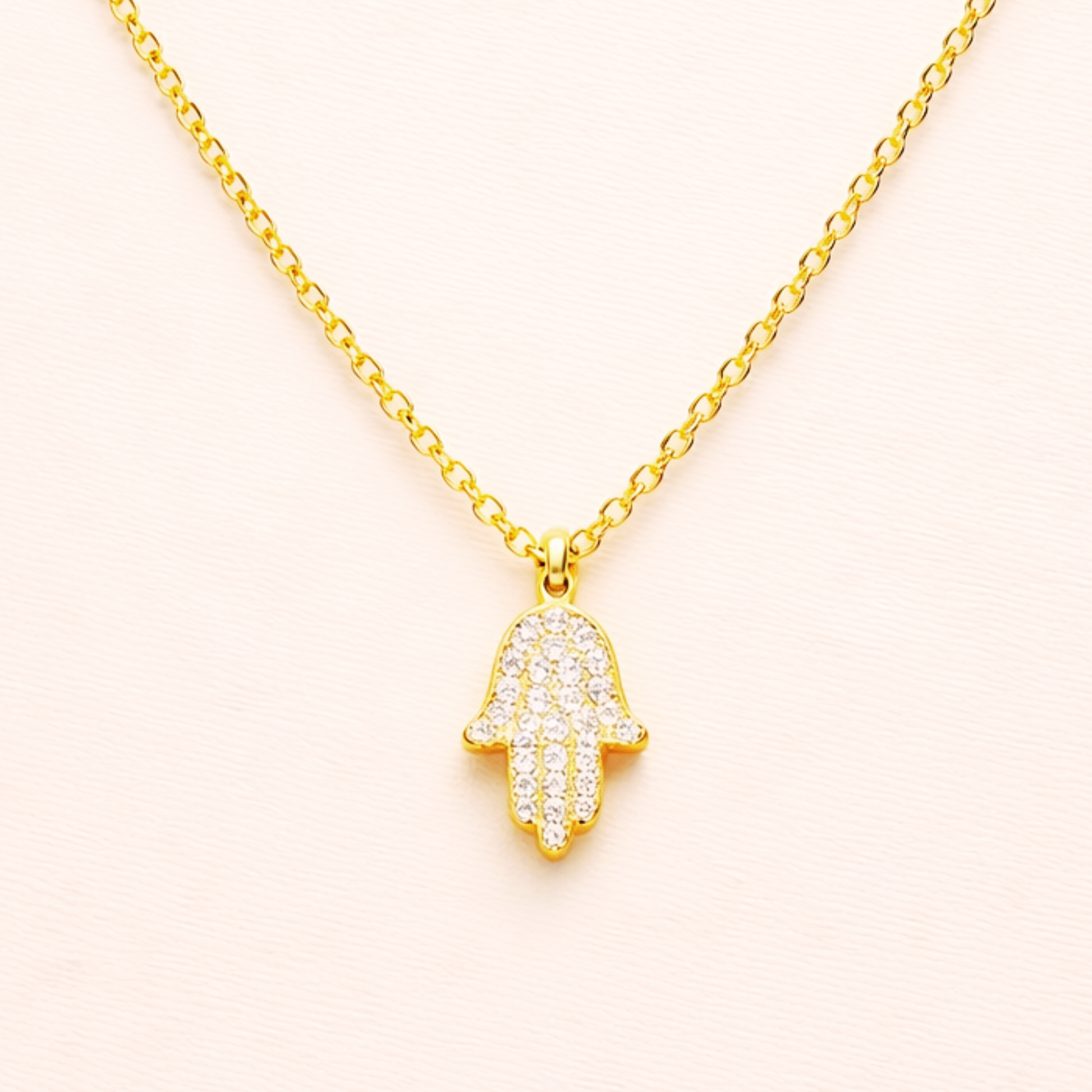 18k Gold Plated Diamond Hamsa Pendant Necklace