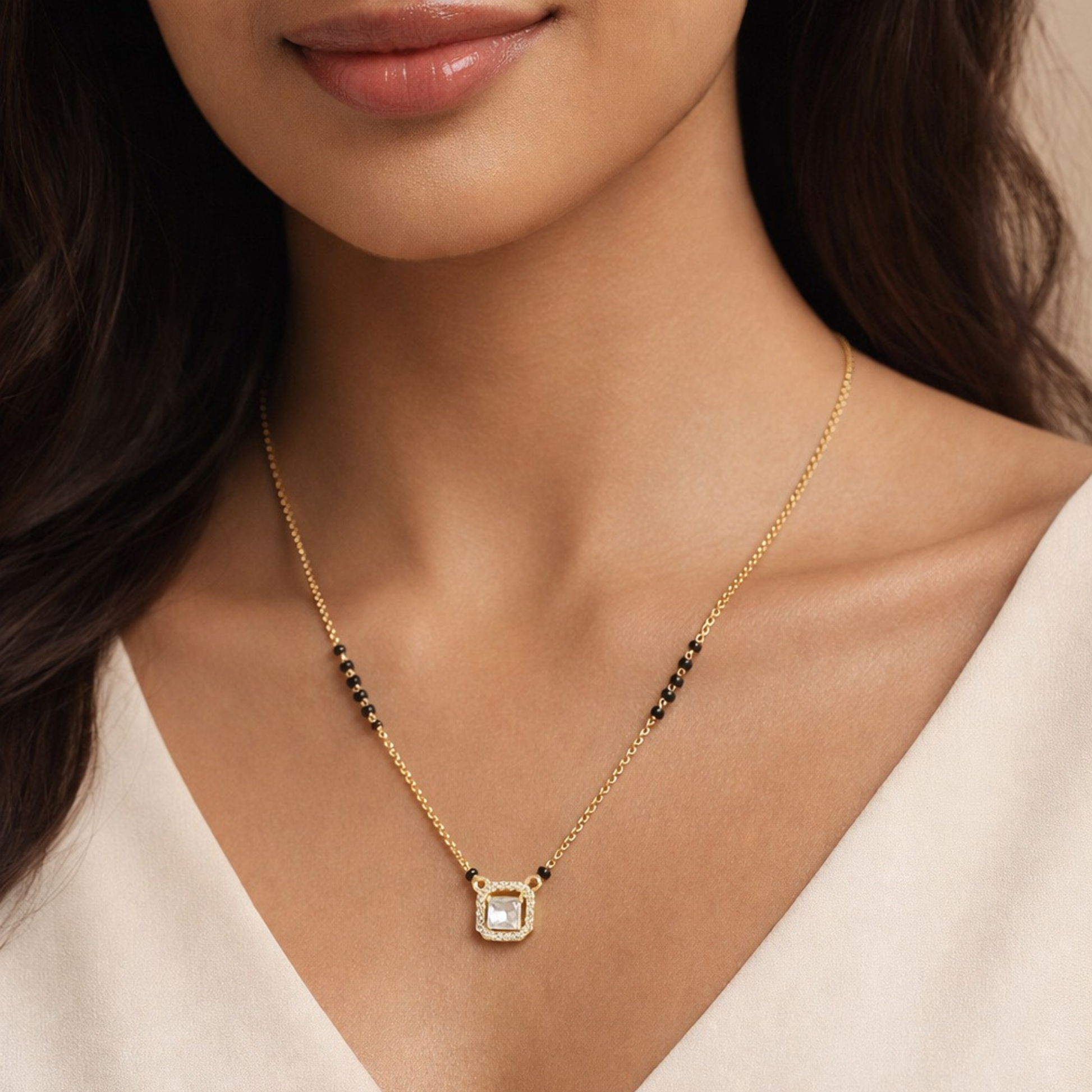 Bring timeless elegance to your everyday style with this beautiful square-pendant mangalsutra.