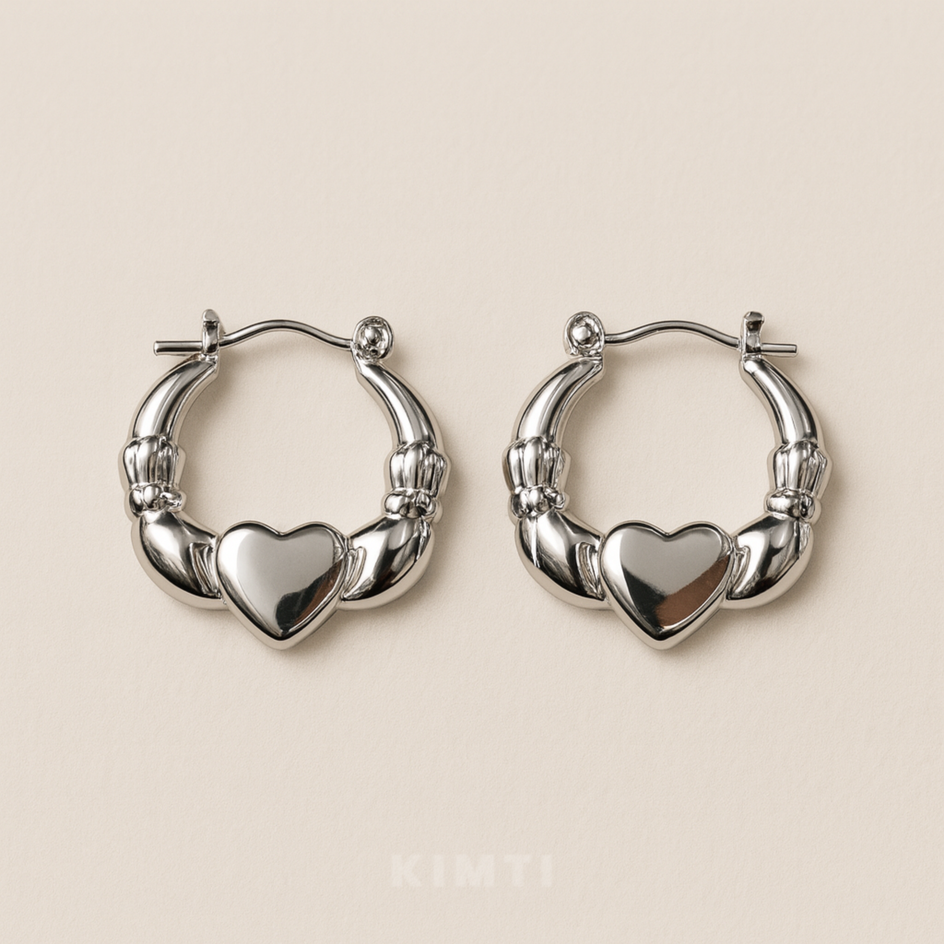 Anti-Tarnish Thick Heart Motif Designer Hoops