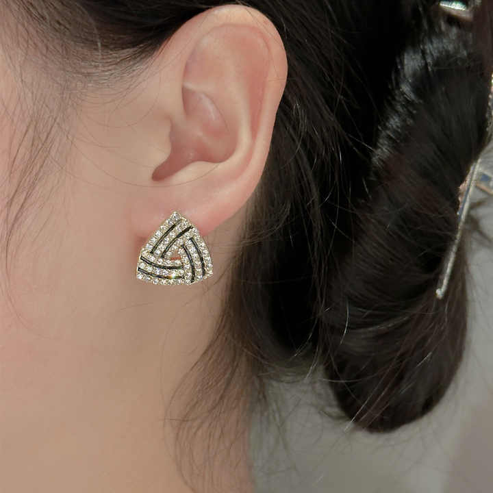 Black silver diamond Stud Earring