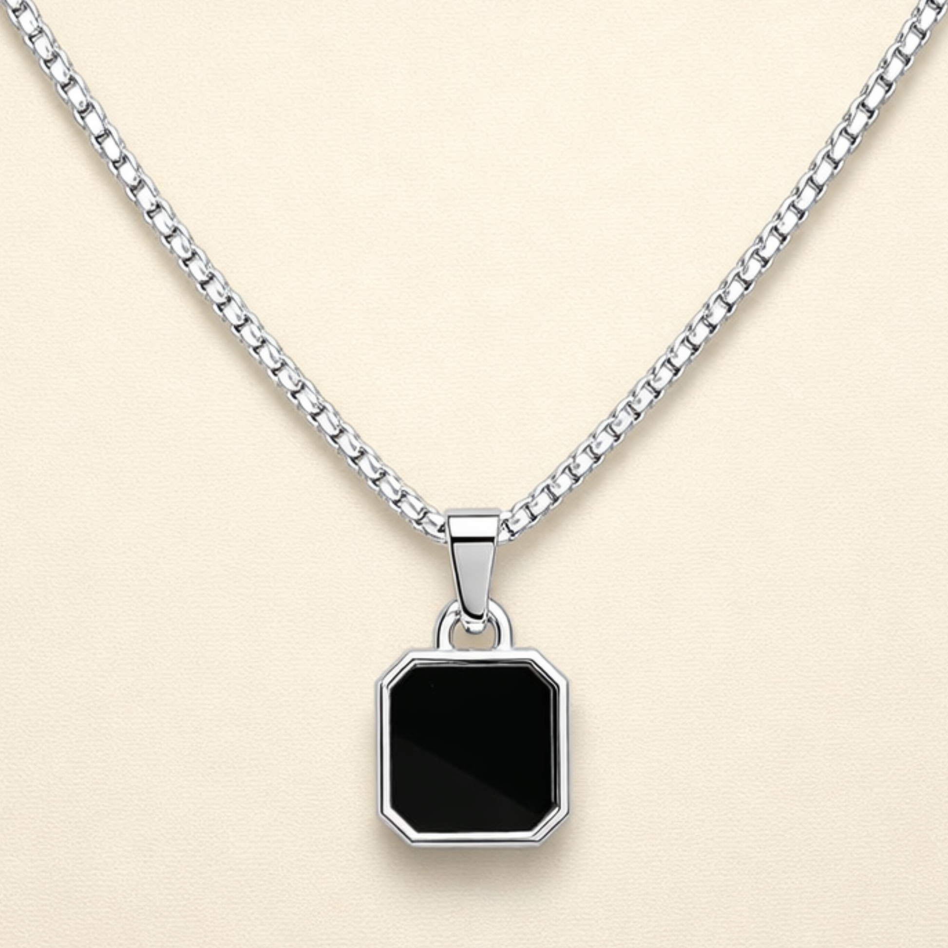 Men - Geometric Black Stone Silver Necklace