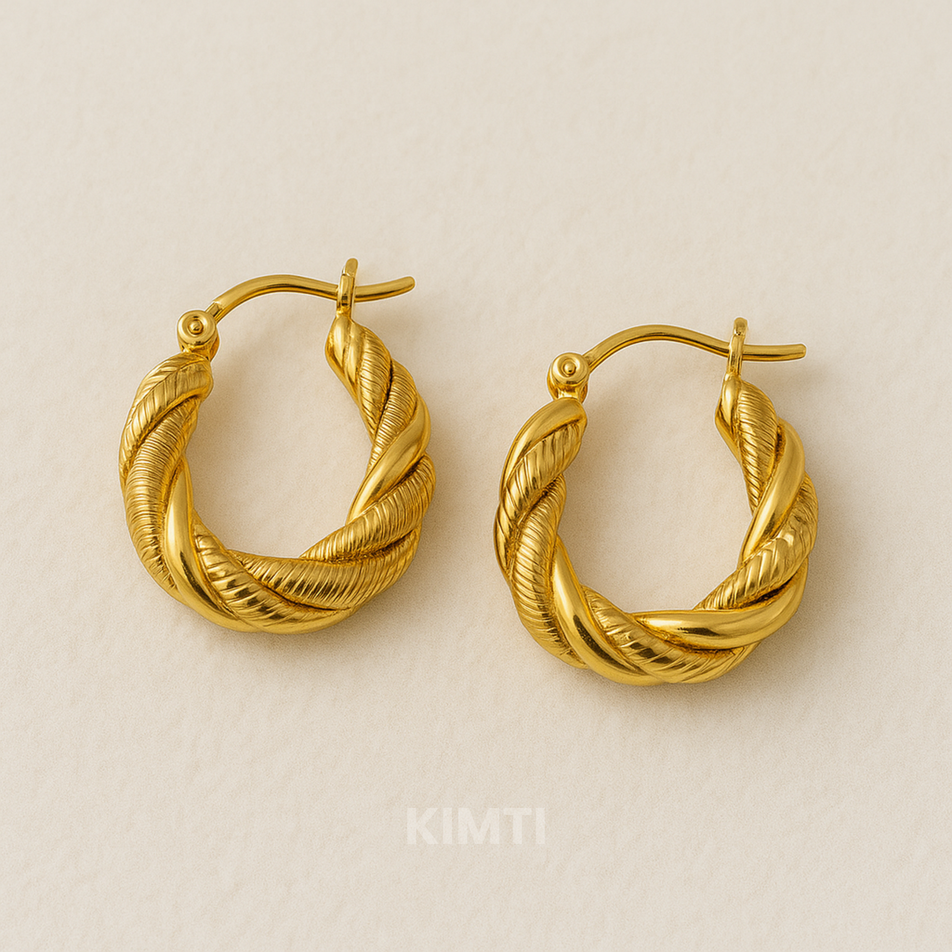 18K Gold Plated Chunky Twist Hoop Anti Tarnish Earring