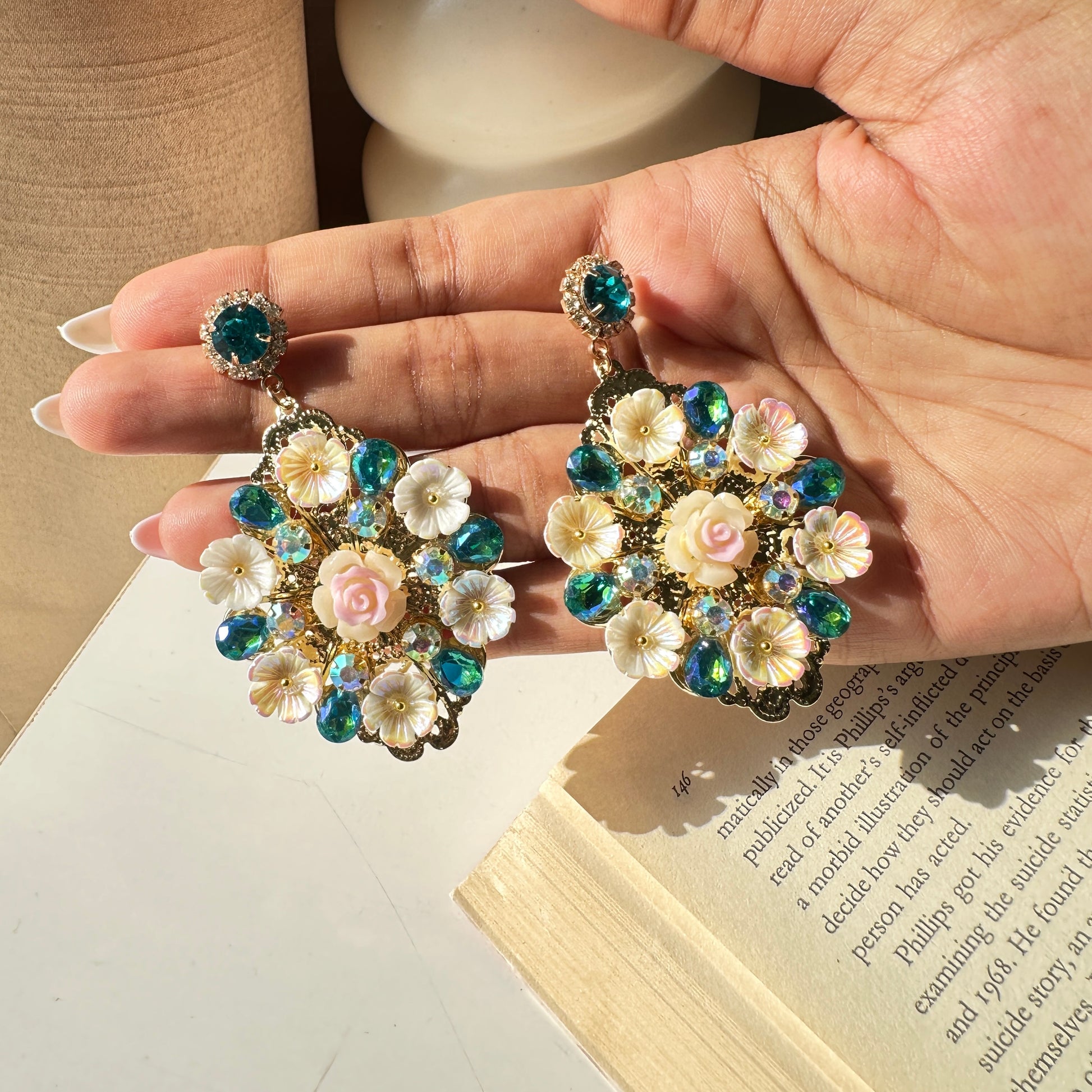Green Crystal Stone Turkish Earrings