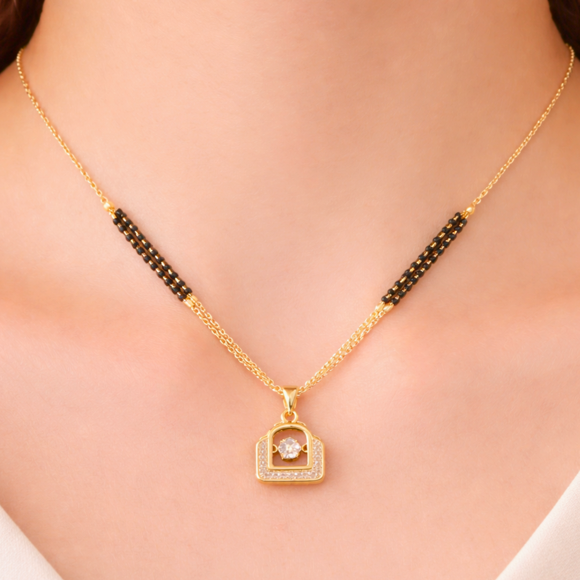 Bring timeless elegance to your everyday style with this beautiful square-pendant mangalsutra.