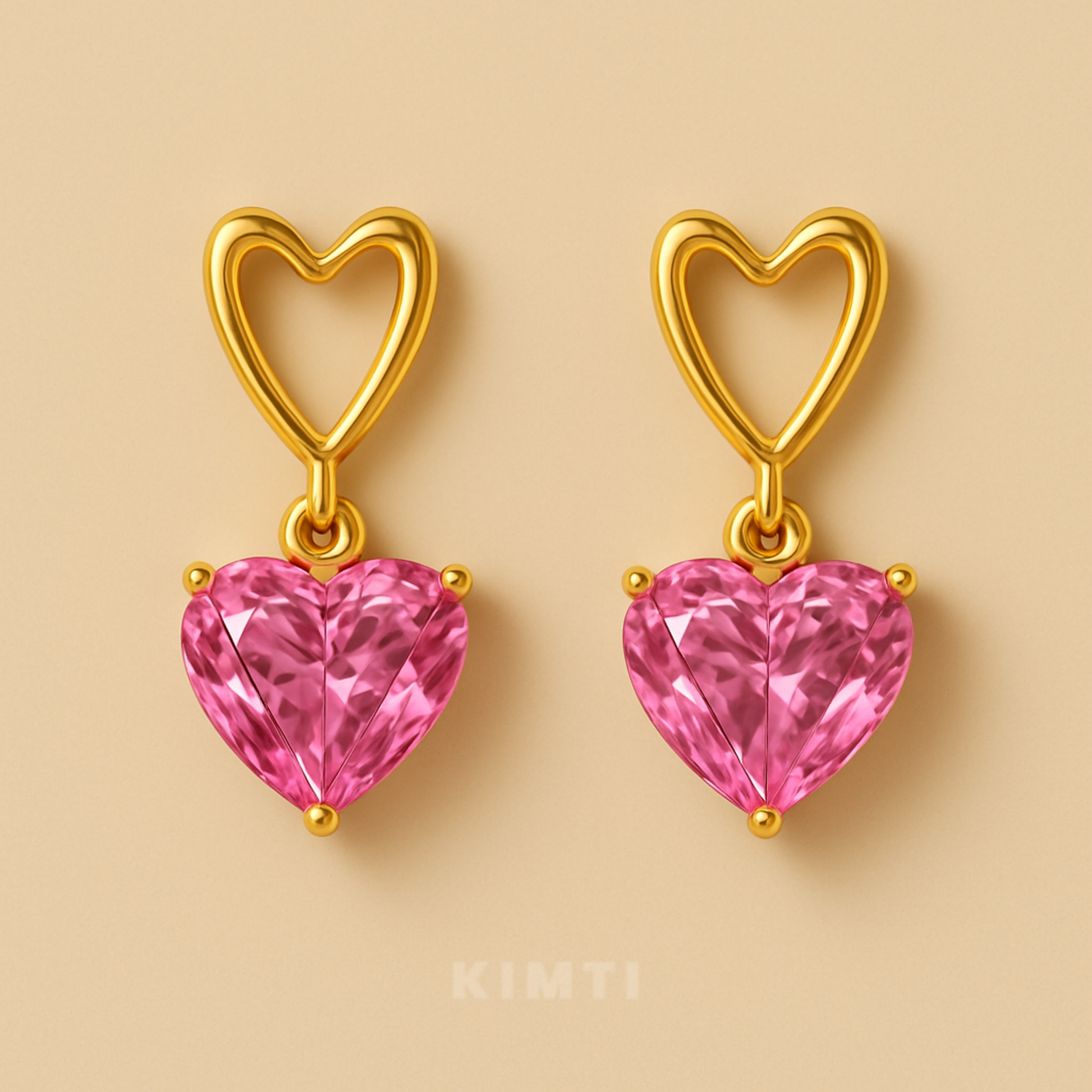 Pink Crystal Heart Dangle Earrings